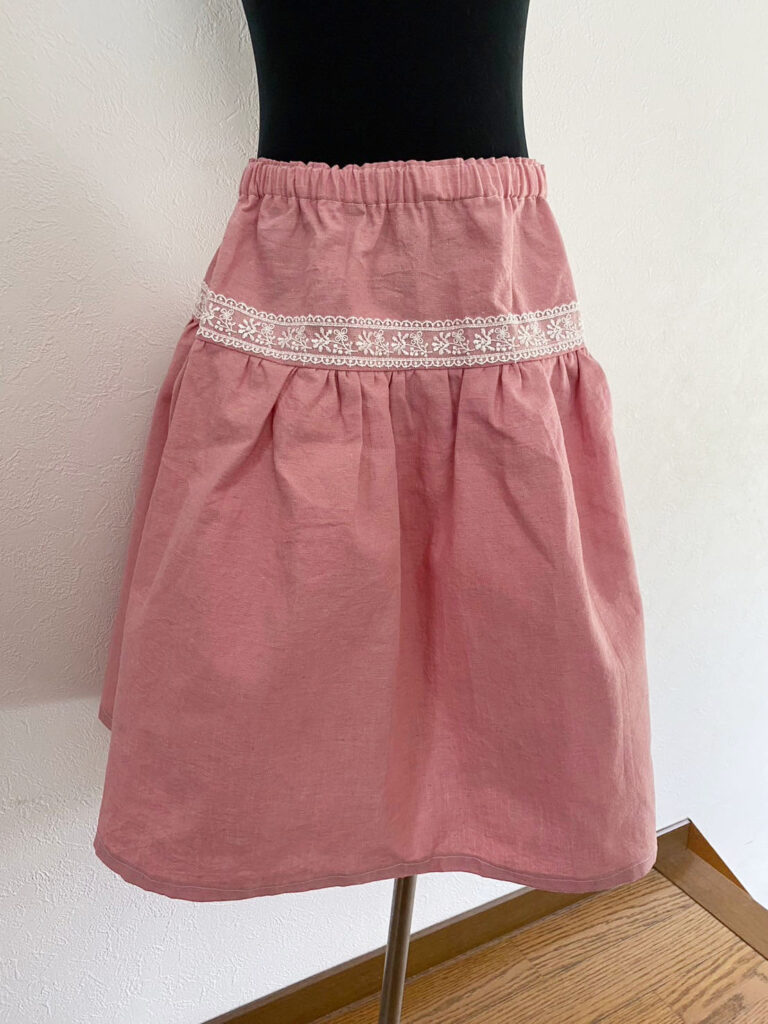 コメント:ピンクのギャザースカートが欲しくて作りました。生地もお気に入りを探して、はじめてのロックミシンもがんばりました。