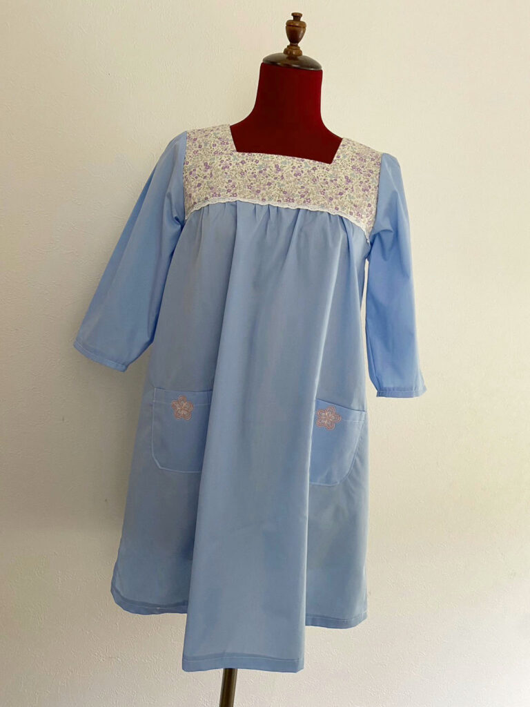 コメント:あまり着たことのない色の服を作ってみました。共布でボタンを作ったり細かいところまでこだわりました。