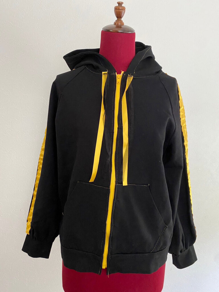 コメント:ニット生地の扱いが大変でした。袖をふんわりとさせて推しのキャラのカラーを意識してリボンやステッチなどを仕上げました。